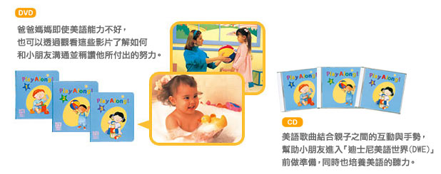 這套產品是專門設計給剛開始學習美語的嬰兒與小小朋友,透過模仿他們所看到和聽到的